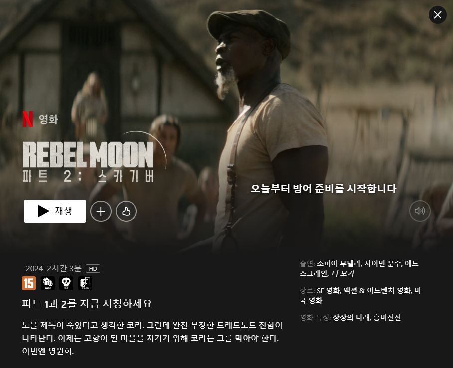 2. "Rebel Moon – Part Two: The Scargiver" (레벨 문 2)