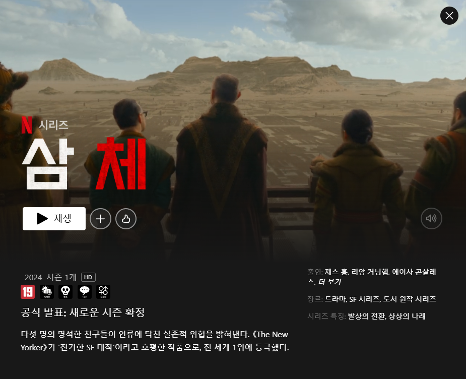 대략의 줄거리는 중국 작가 류츠신의 세계적 베스트셀러 **『삼체(三体)』**를 원작으로 한 작품입니다.