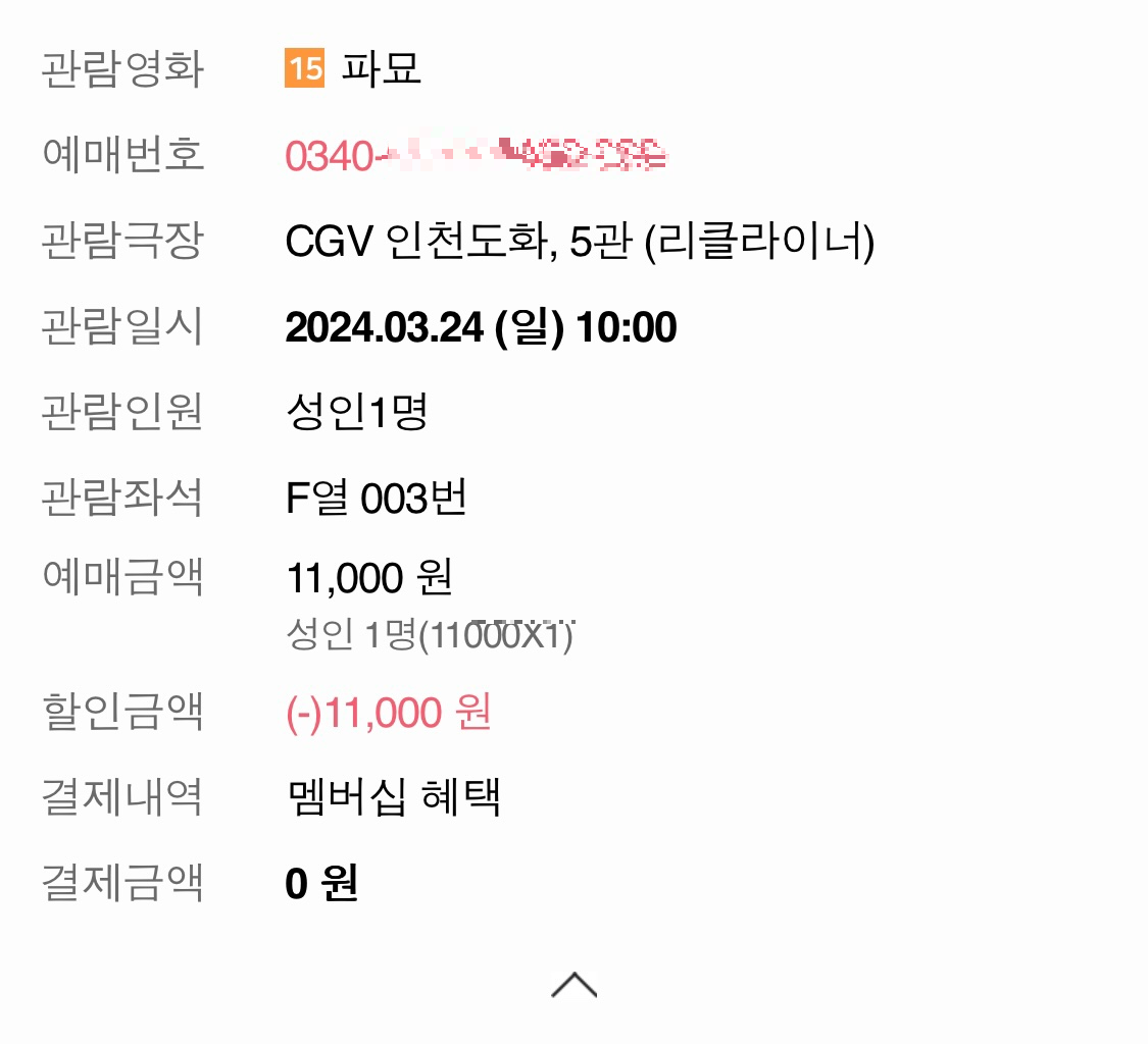 오랜만에 자유시간이 되어서 영화관람에 갔다왔는데 이제서야 포스팅을 하게 되었습니다. 최근 백상예술대상에 개그우먼 이수지씨가 나와서 배우 김고은씨 성대묘사 하는 것을 보고 갑자기 생각나서 파묘 본 이야기를 써볼까 합니다. 새로운 곳에 이사온지도 4달이 다되가는데 이 동네 영화관은 어디있는지 이제서야 찾아보고 낯선지역에서 처음 본 영화가 파묘였습니다. 파묘라는 영화가 굉장히 이슈가 많이 있어서 궁금하기도 하고 영화표를 무료로 구매할 수있기도 하고 해서 혼자 가벼운 마음으로 갔다왔습니다. 일요일날 오전에 보러 갔는데 사람이 별로 없기도 하고 영화비용도 저렴하더라구요? 시간대별로 다른 건가? 하는 생각이 드네요. 저는 통신사 할인을 받아서 무료로 이용했습니다만, 근데 사실 파묘보러 가는길은 좀 두렵더라구요. 무서운 영화 별로 안 좋아하기도 하고 더군다나 혼자 보는 것이니 전날에 취소 할까까지 생각했었더랍니다. 그래도 뜨거운 이슈가 있는 영화를 그냥 지나친다는 것도 영화좋아하는 사람으로서 예의가 아닌것 같아서 용기를 내어서 혼자 가보았습니다.