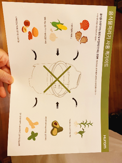 휴롬제품은 적은 양을 쾌속으로 할 수 있는 기능도 있고 모았다가 한꺼번에 돌리기 위해 보관하는 기능도 있으니 참고하기 바랍니다. 딱딱한 동물뼈, 어패류, 양파 마늘 옥수수 껍질과 옥수수 속대, 호두껍질, 밤껍질, 복숭아씨나 살구씨, 왕겨, 나무젓가락, 한약찌꺼기,쪽파, 대파, 미나리 뿌리는 제품에 넣을 수 없는 것들입니다. 음식물 쓰레기로 처리된 가루들은 일반쓰레기로 버리면 된다고 합니다.